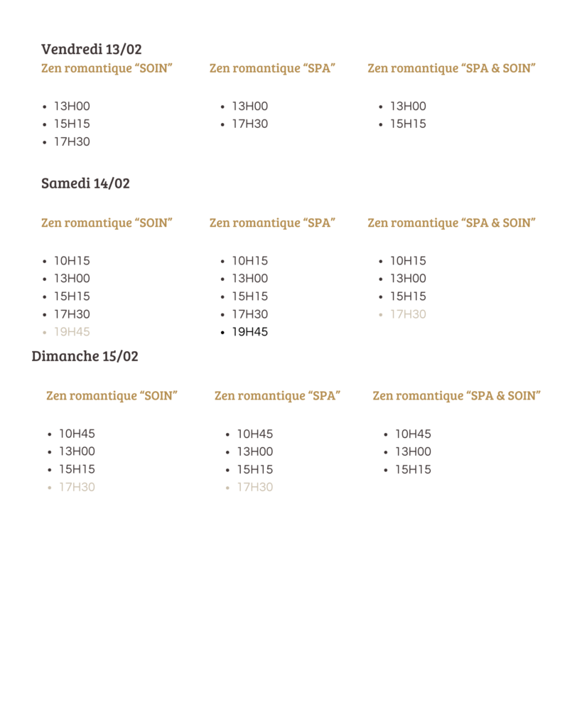 *Les formules sont disponibles les 13, 14 et 15 février 2026